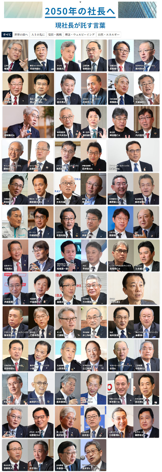 その一覧写真を見た瞬間に恐ろしい違和感と異常さを感じた。その顔ぶれの異常さを狙った記事かと思ったが、どうやら大真面目に著名企業社長から未来の経営者に言葉を集めたらしい。