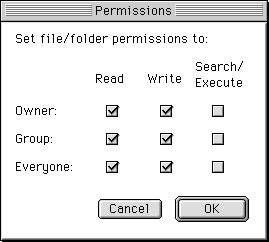 アップロードされたファイルを選択(クリックして反転させた状態で)して、メニューバーの「Remote」→「Set Permissions」を選択して下記のような画面を表示させます。 ●パーミッションを「755」に設定の場合(プログラム系) ●パーミッションを「666」に設定の場合(データファイル系)